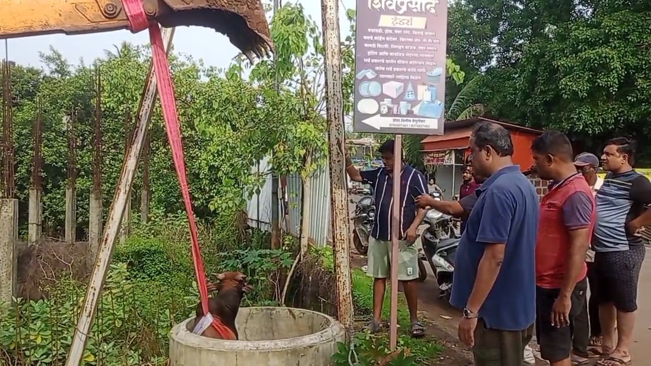 कणकवली : शहरात डीपी रोड नजीक असलेल्या गटाराच्या चेंबरमध्ये आज सकाळी 6.30 वाजण्याच्या सुमारास बैल पडल्याची घटना घडली. ही घटना समजतात माजी उपनगराध्यक्ष बंडू हर्णे यांच्या ही बाब तेथील काहींनी निदर्शनास आणली. त्यानंतर माजी उपनगराध्यक्ष बंडू हर्णे यांनी तातडीने घटनास्थळी पाहणी करत ठेकेदार अनिल पवार यांच्या कर्मचाऱ्यांच्या व सामाजिक कार्यकर्त्यांच्या माध्यमातून या बैलाला जीवदान दिले. डीपी रोड जवळील एका गटाराच्या चेंबरमध्ये सकाळच्या सुमारास हा बैल पडल्यानंतर येथील काही स्थानिकानी ही घटना पाहिली. त्यानंतर माजी उपनगराध्यक्ष श्री हर्णे यांच्यासहित स्थानिक लोकही या ठिकाणी जमा झाले. मात्र बैल ज्या चेंबर मध्ये पडला होता तिथून तो गटारातून त्या पुढील चेंबर मध्ये जाऊन थांबला. सुदैवाने बैलाला मोठी दुखापत झाली नाही. दरम्यान बैलाला बाहेर काढण्यासाठी जेसीबी द्वारे बेल्ट लावून चेंबरमध्ये कर्मचारी उतरून त्या बैलाला सुखरूप बाहेर काढले. यावेळी अनिल पवार, मिथुन ठाणेकर नागवे ग्रामपंचायत सदस्य संदेश उर्फ मन्या सावंत यांच्यासह अन्य उपस्थित होते.