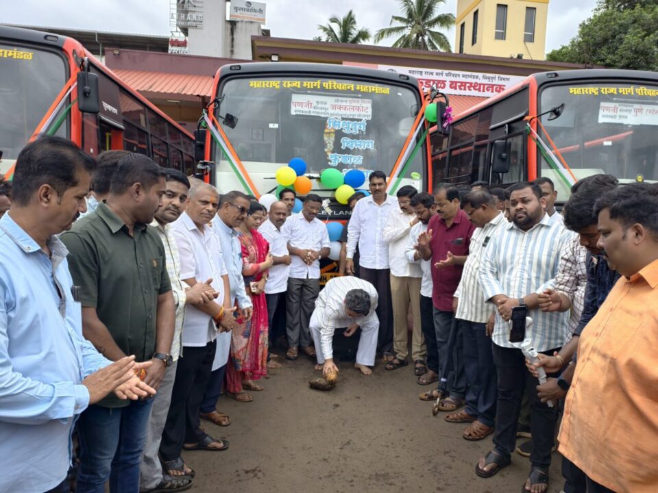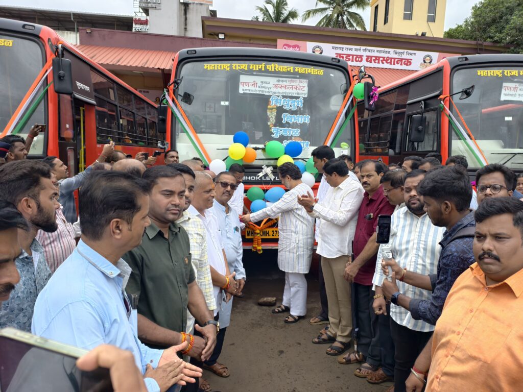 यावेळी कुडाळ आगारात नवीनच झालेल्या लाल परी बसेस पुढील प्रवासासाठी कुडाळ येथून रवाना झाल्या.