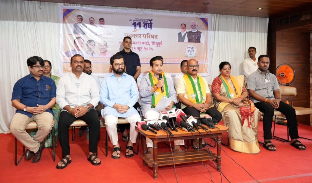 भारताचे पंतप्रधान नरेंद्र मोदी यांच्या कारकीर्दीला अकरा वर्षे पूर्ण झाली. यानिमित्ताने भारतीय जनता पार्टी सिंधुदुर्ग च्या वतीने विकसित भारताचा अमृत काल, सेवा सुशासन आणि गरीब कल्याण हे मोदी सरकारची अकरा वर्ष विकासाची ध्येय दृष्टी गाठणारी होती याची माहिती देण्यासाठी पत्रकार परिषद आयोजित करण्यात आली. यावेळी भारतीय जनता पार्टीचे जिल्हाध्यक्ष प्रभाकर सावंत महिला जिल्हाध्यक्ष श्वेता कोरगावकर, संयोजक मनोज रावराणे, सहसंयोजक लखमराजे भोसले, डॉक्टर मिलिंद कुलकर्णी, युवा मोर्चा जिल्हाध्यक्ष संदीप मेस्त्री, मागास सेलचे जिल्हाध्यक्ष नामदेव जाधव कणकवली तालुका भाजप अध्यक्ष मिलिंद मिस्त्री माजी नगराध्यक्ष समीर नलावडे, देवगड माजी नगराध्यक्ष साळसकर,आदी उपस्थित होते.